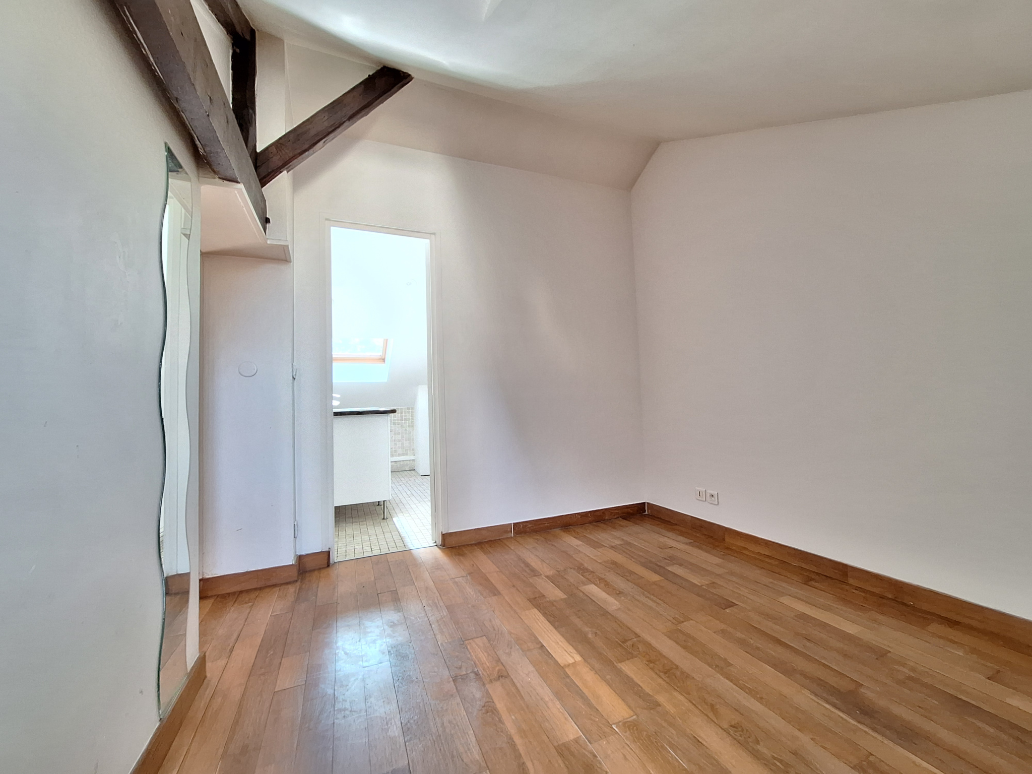 POISSY. Dans immeuble ancien en face de la collégiale, à 5' de la gare, du centre-Ville, des commerces et du Parc Meissonier, ce 2 Pièces mansardé de 30,06 m² (surface au sol de 47,90m²) situé au 4ème et dernier étage sans ascenseur se compose d'une pièce principale avec parquet ancien, d'un coin cuisine, d'une chambre avec parquet, d’une salle d'eau avec WC. Une cave complète ce bien. Le chauffage est individuel électrique par radiateurs et l’eau chaude est individuelle par ballon électrique. Les informations sur les risques auxquels ce bien est exposé sont disponibles sur le site Géorisques